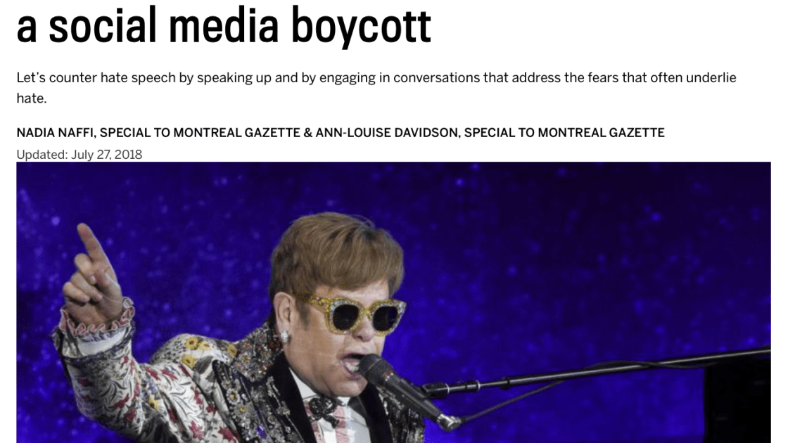 Now, with Montreal Pride (Aug. 9-19) around the corner, let’s agree with Sir Elton John on the necessity to react to hate speech.